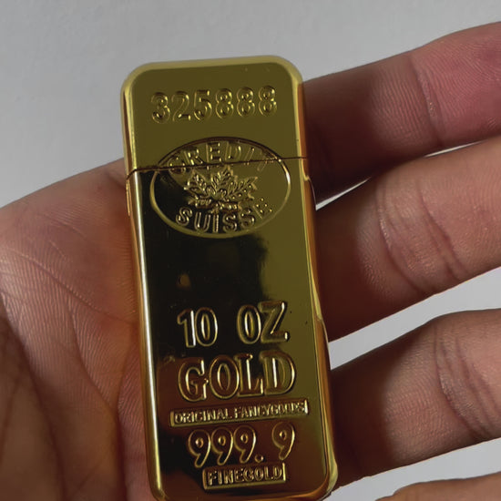 Bricheta Gold atrage atenția prin designul său elegant, având forma unui lingou de aur și fiind confecționată din metal de înaltă calitate.