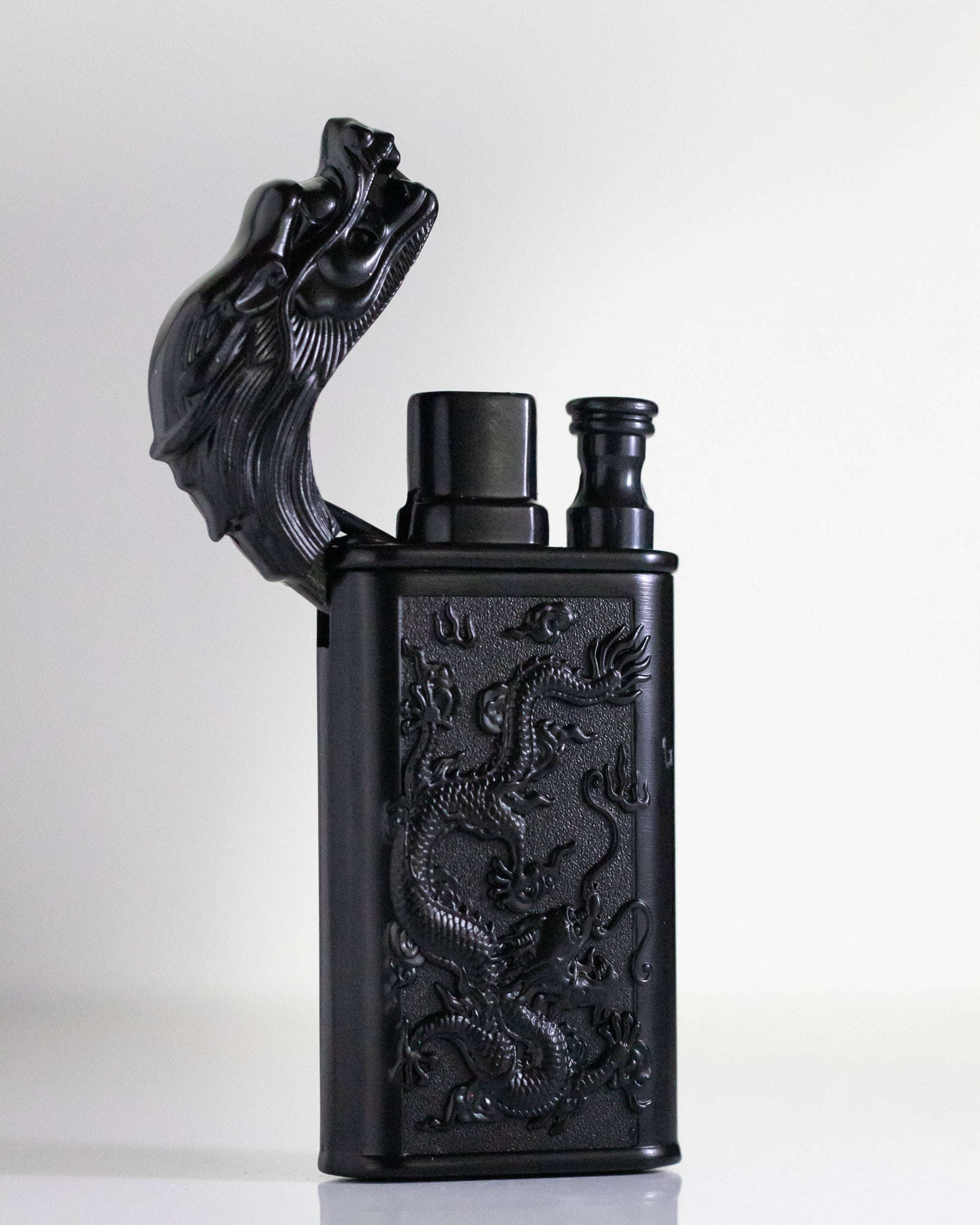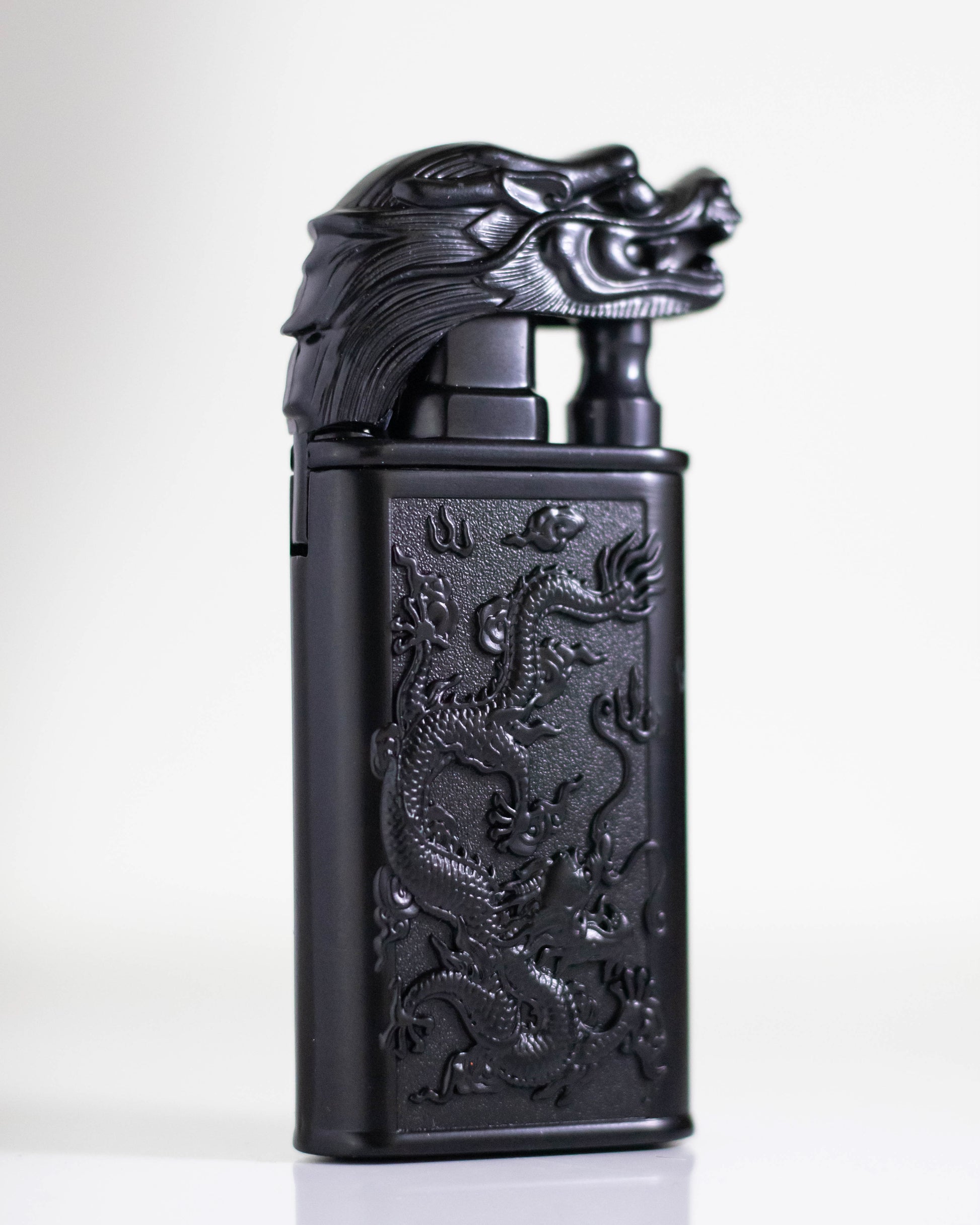 Dispune de o flacără dublă ajustabilă – una rezistentă la vânt și una normală, care iese din gura dragonului. Confecționată integral din metal, bricheta are un aspect unic și captivant. Este livrată deja încărcată cu gaz butan și se poate reîncărca cu ușurință prin valva situată în partea inferioară.